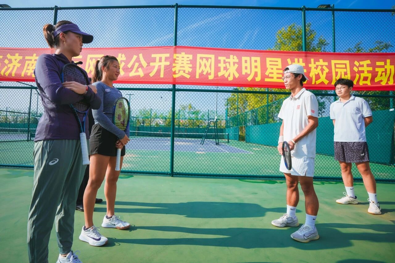 10月13日,2025年济南国际网球公开赛女子赛事正式拉开帷幕。我校荣幸邀请到职业女子网球运动员丰硕女士和张玮桓女士走进济外校园,与师生展开亲切交流。