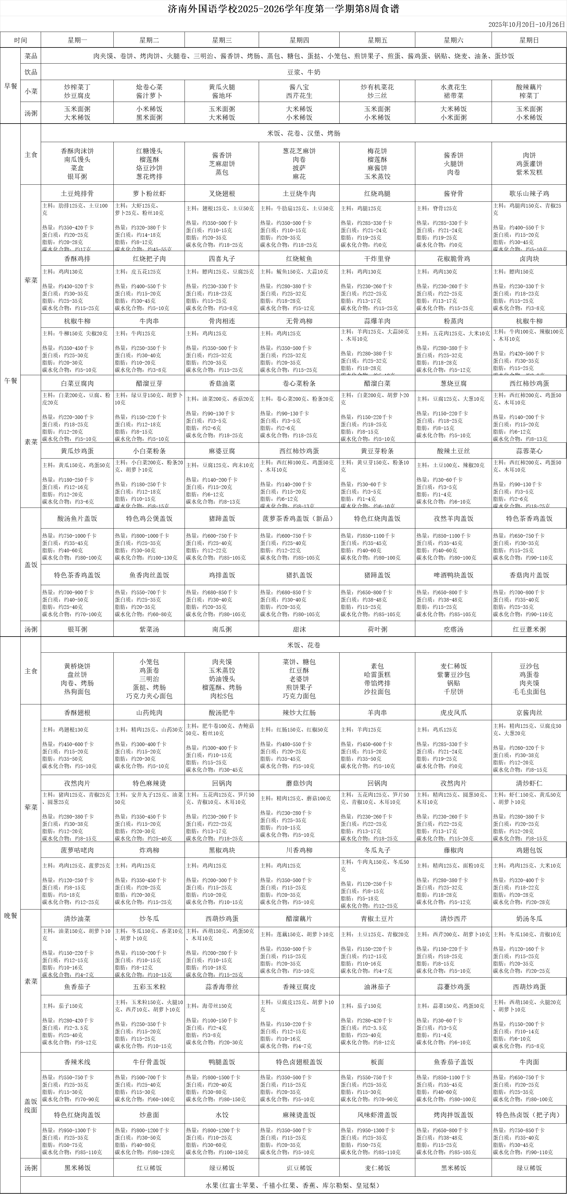 2025-2026学年度第一学期学生餐厅第八周食谱