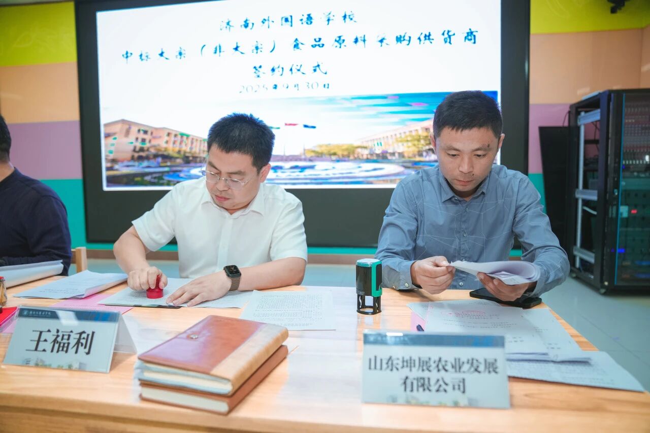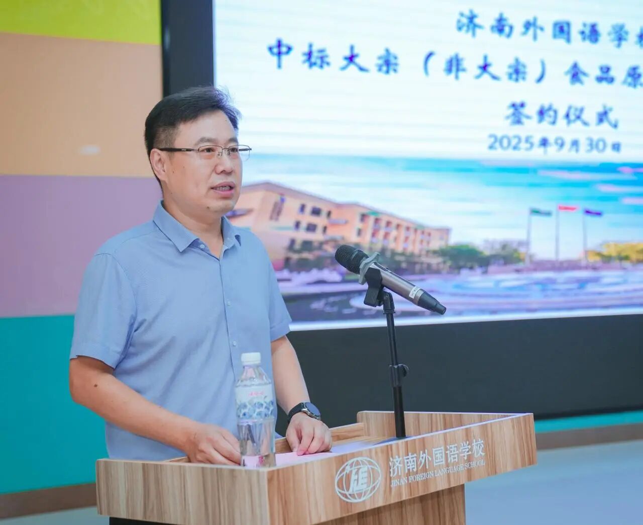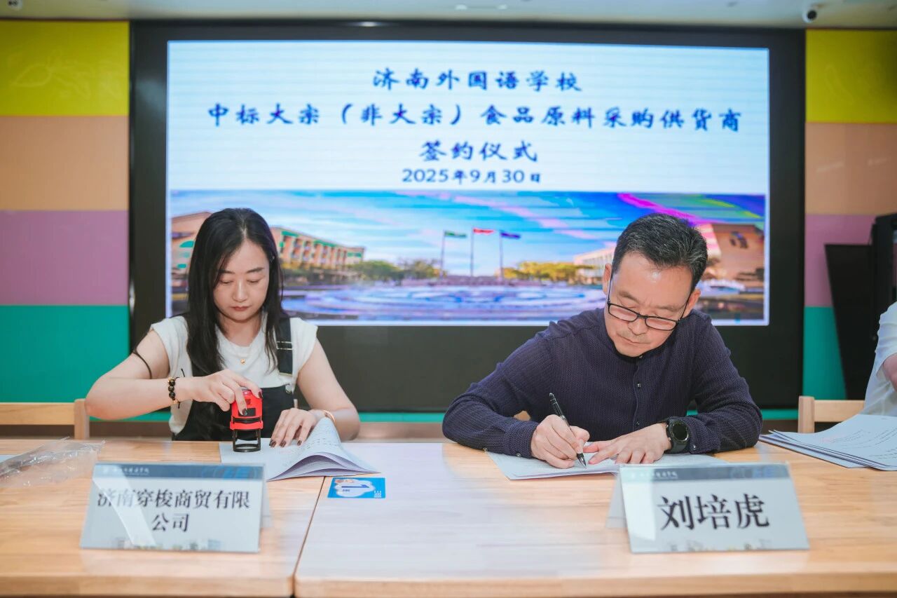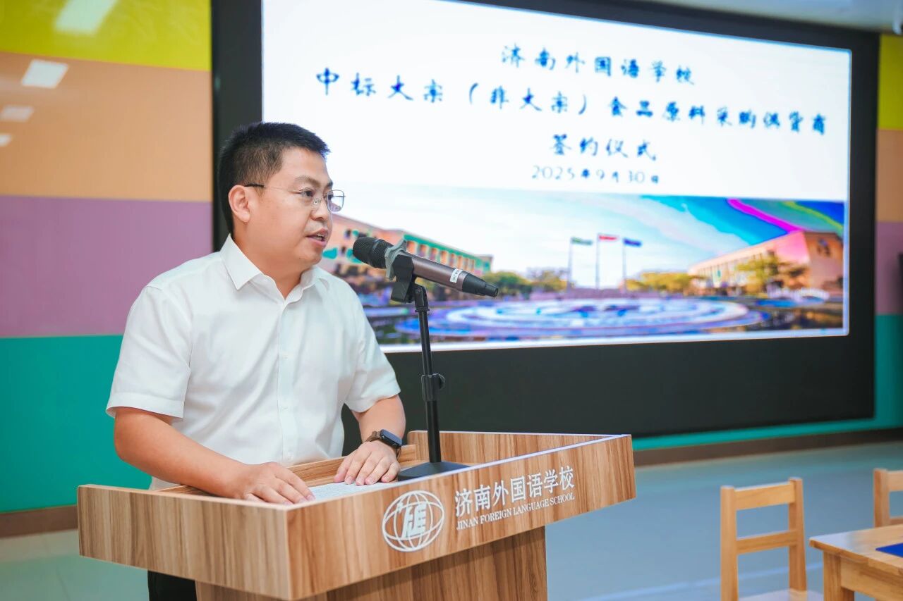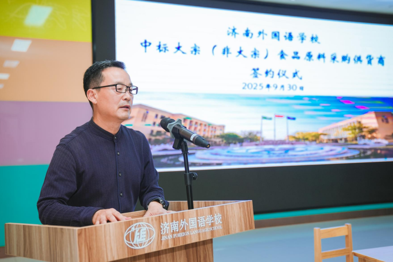 为进一步规范校园食品采购管理,保障全校师生饮食安全与营养健康,9月30日,济南外国语学校举行食堂大宗(非大宗)食品原料采购配送服务合同签订仪式。学校膳食监督家长委员会代表、学校领导、后勤保障部相关人员及各标段中标供应商代表参会。