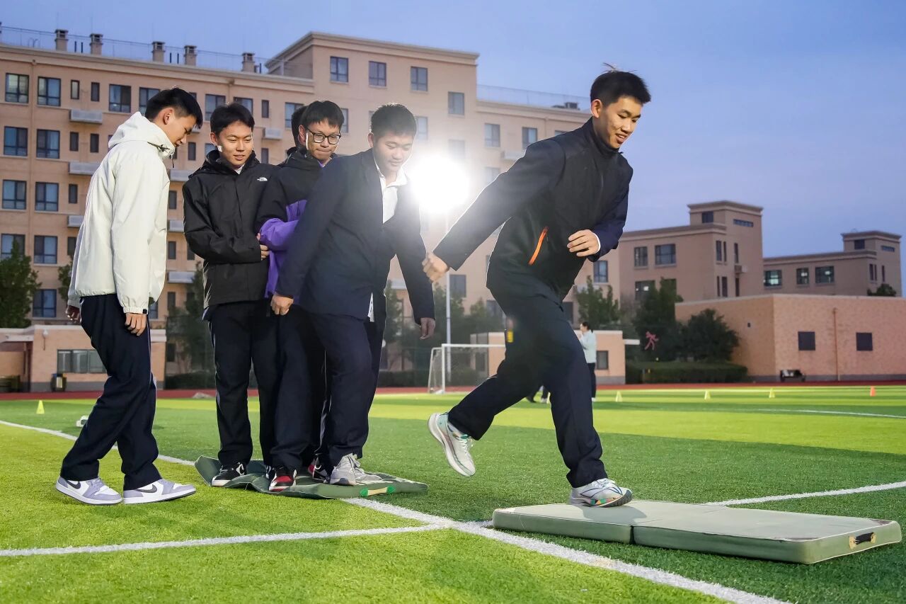 “搭桥过河”场上,两方体操垫化作渡江之“一苇”。学子们不再独行,需以默契为楫,以共济为帆。每一次垫子的传递与铺就,都是智慧与信任的交融,将个人步伐汇入团队行进的洪流,深刻诠释了“同舟共济”的千年古训。