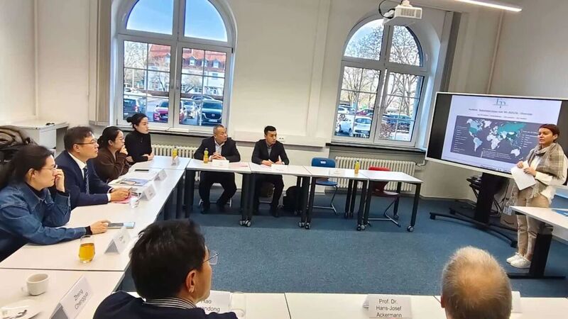 随后,代表团到亚琛应用科技大学预科学院与院长、教师及济南外国语学校毕业生代表座谈,围绕课程衔接与学生适应能力提升展开交流,德方教师的专业介绍与毕业生分享的一线经验,为济南外国语学校优化多语卓越课程德语项目提供了重要依据。