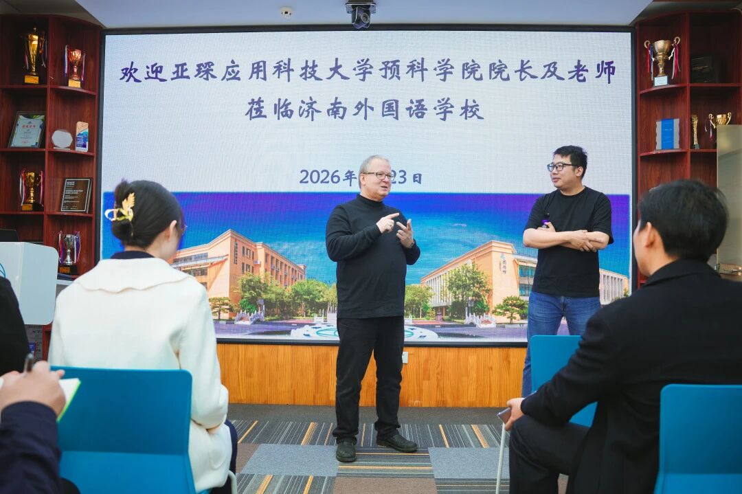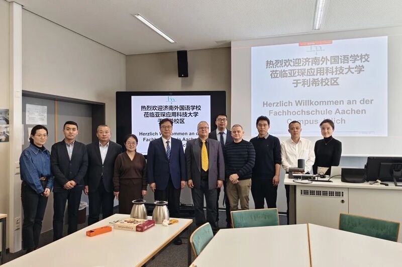 近日,德国亚琛应用科技大学预科学院院长Ackermann教授、考试中心主管徐辰老师一行回访济南外国语学校。此次回访是继2025年底校长林宝磊率团访德后,双方在半年内开展的又一次深度交流。