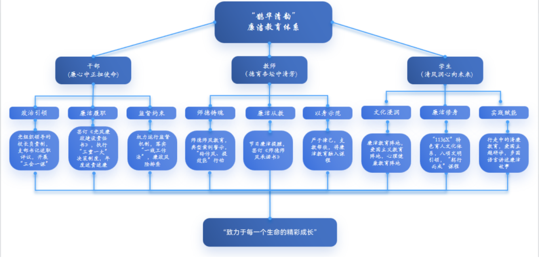 学校深耕“鹊华清韵”清廉教育特色品牌,创新构建“制度固廉、师德润廉、全域育廉、阵地扬廉、特色赋廉、示范带廉”全维度工作体系,推动清廉建设走深走实、见行见效。