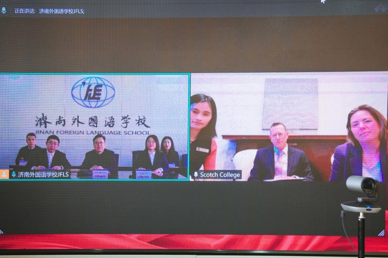 近日,济南外国语学校与阿德莱德苏格兰学院成功举行友好合作线上签约仪式。学校校长林宝磊、阿德莱德苏格兰学院校长特伦特·德赖弗出席并致辞,仪式由学校纪委书记邢进主持。